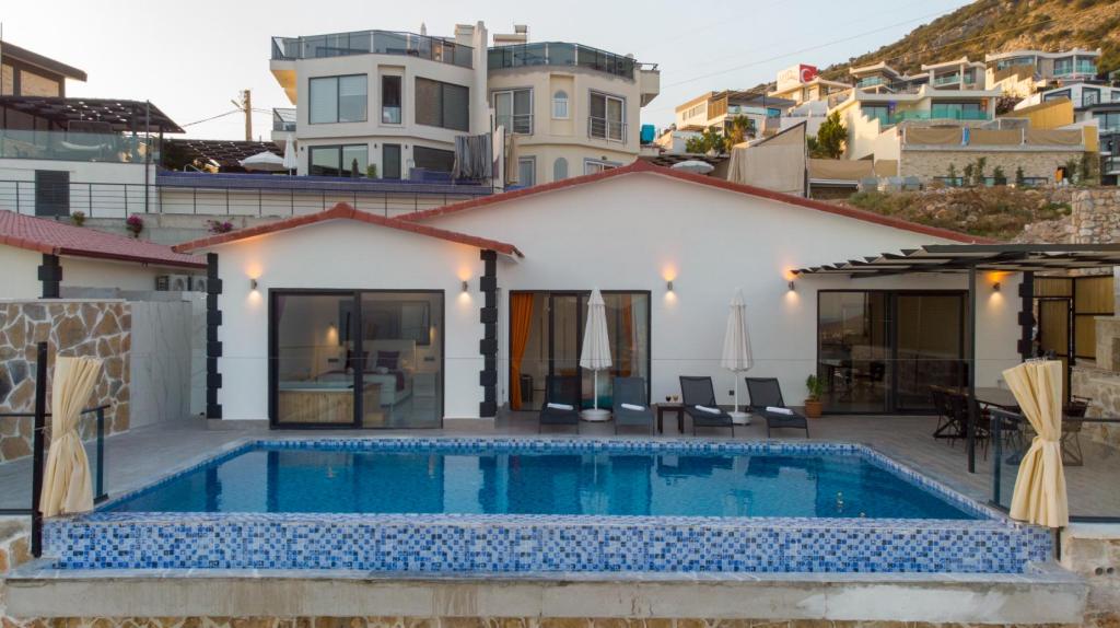 Вилла Эбру расположена в районе Акбель курортного города Калкан и идеально подходит для молодожёнов и семей, соблюдающих принципы приватности. Вилла рассчитана на 4 человека и предлагает уединённый частный бассейн, великолепный вид на море и природу, сауну, турецкую баню и джакузи. Это отличный выбор для тех, кто ищет спокойный отдых вдали от шума и суеты.